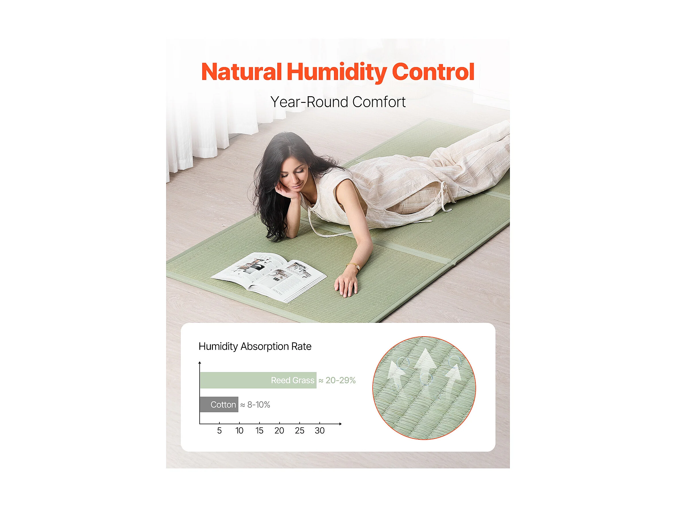 Tatami Japonais SucceBuy Tapis de Tatami Japonais Pliable Twin Size, Matelas Antidérapant en Herbe de Jonc