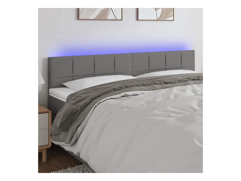 Tête de lit à LED Gris foncé 200x5x78/88 cm Tissu