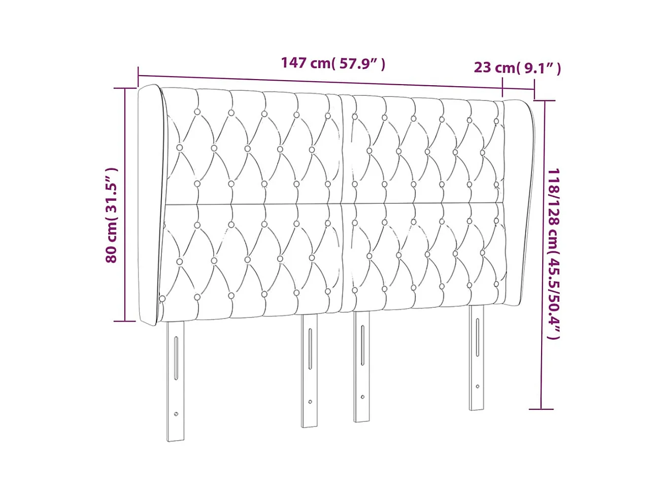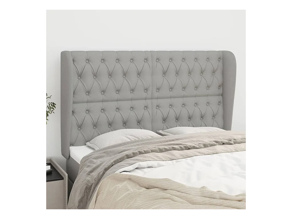 Tête de lit avec oreilles Gris clair 147x23x118/128 cm Tissu