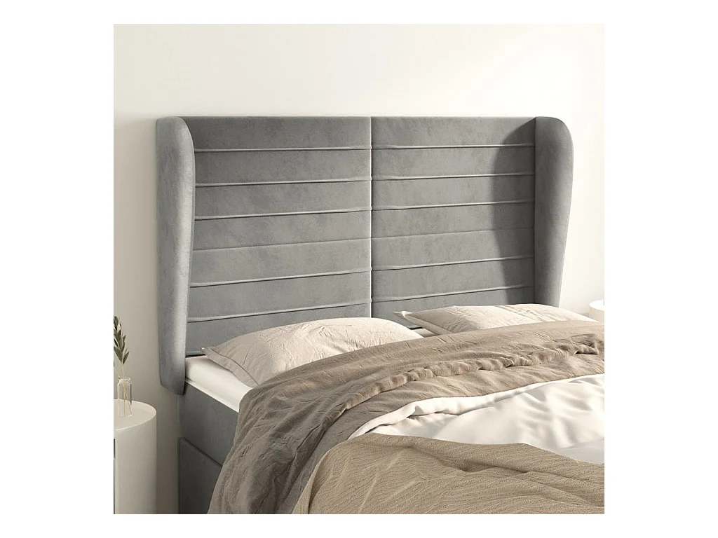 Tête de lit avec oreilles Gris clair 147x23x118/128 cm Velours