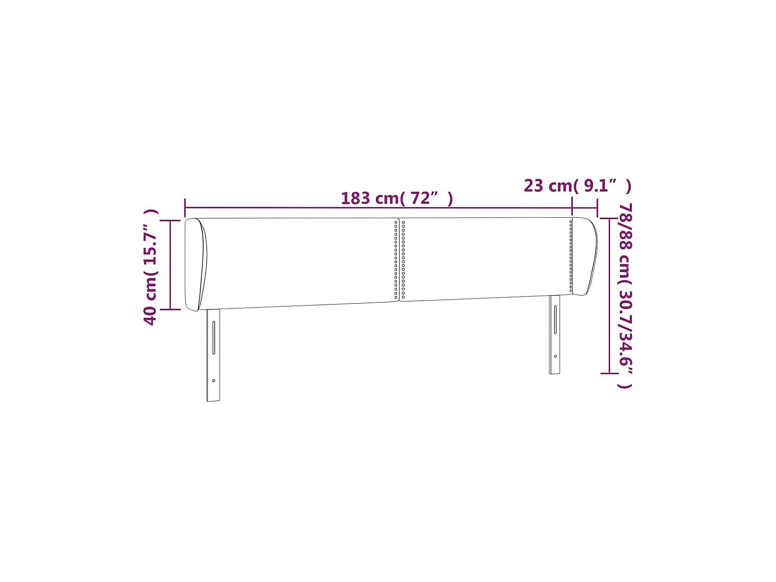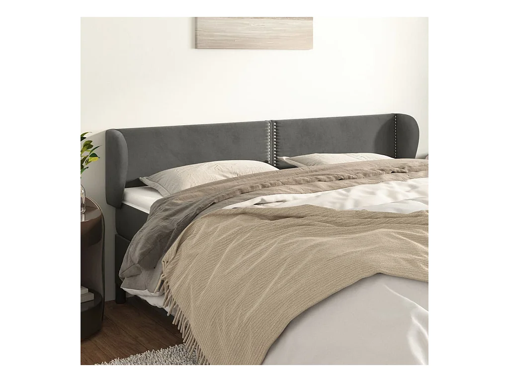 Tête de lit avec oreilles Gris foncé 183x23x78/88 cm Velours