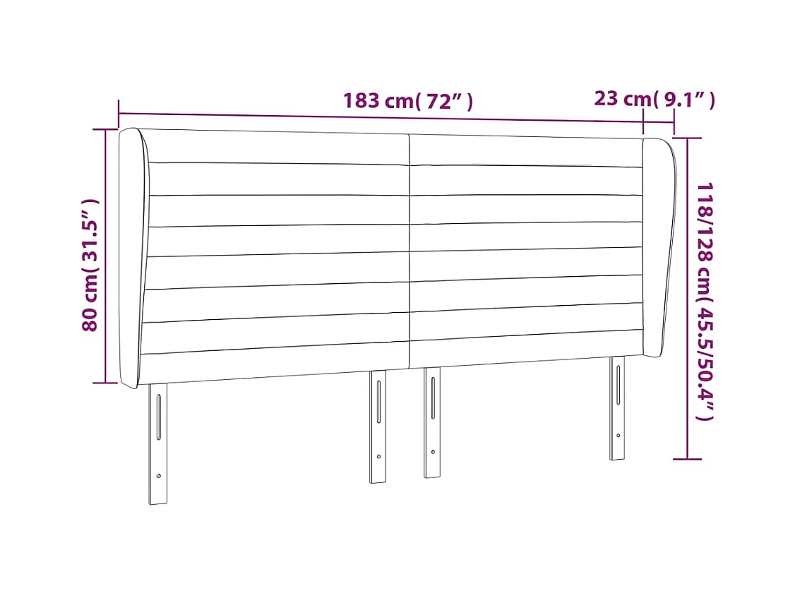 Tête de lit avec oreilles Marron foncé 183x23x118/128 cm Tissu