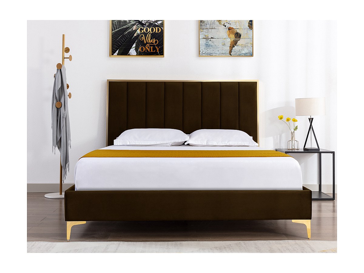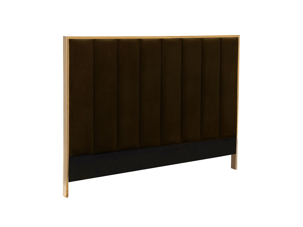 Tête de lit CLARISSE coutures verticales - 160 cm - Velours - Chocolat et doré