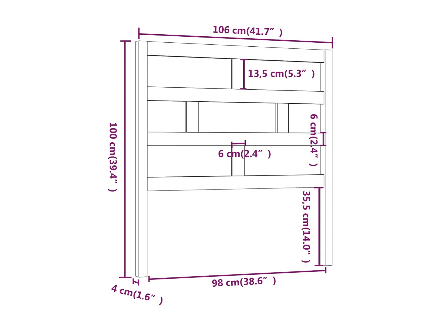 Tête de lit Noir 106x4x100 cm Bois massif de pin