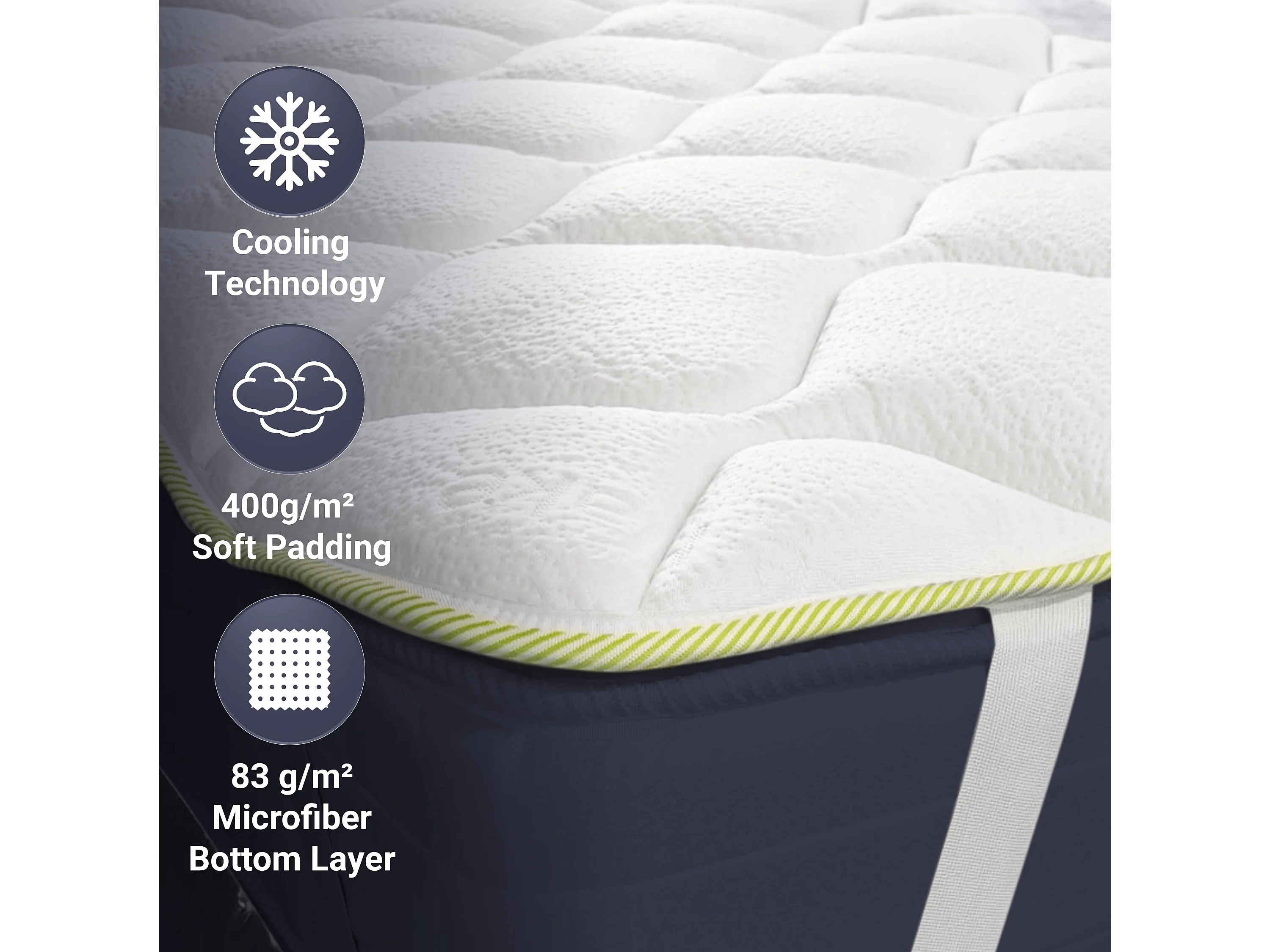 The White Stone Topper Rafraîchissant Simple avec Élastiques | Correcteur de Matelas 160 x 190 | Technologie Cooler et Propriétés Orthopédiques | Hauteur 4 cm