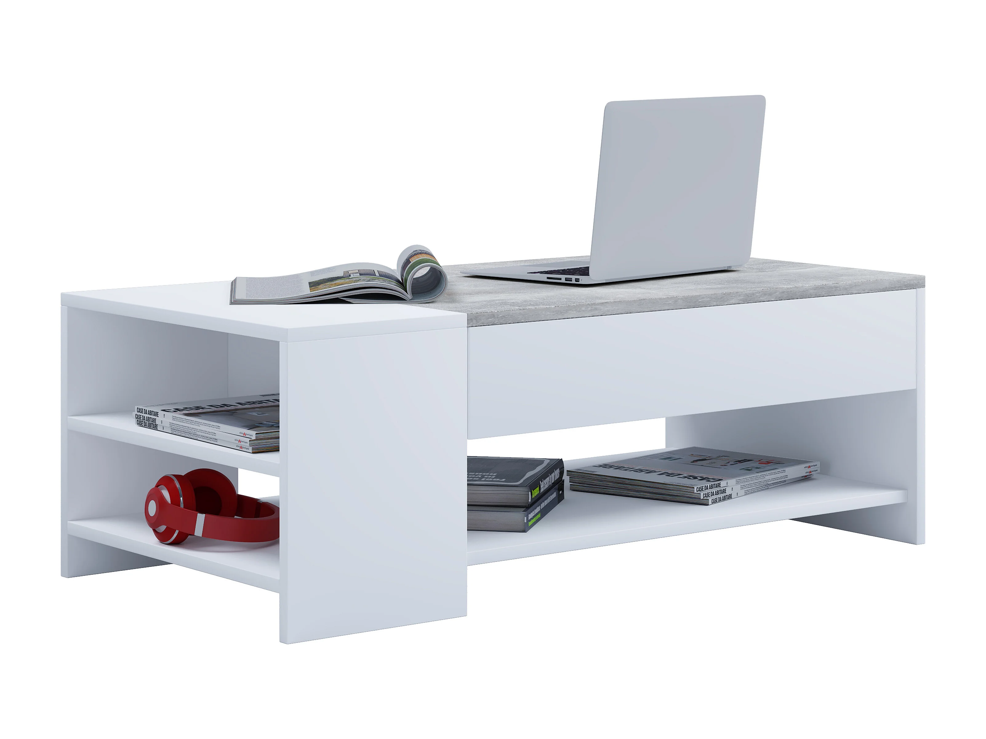 Side table & coffee table Tindus White / concrete optics H. 35 x W. 100 x D. 50 cm