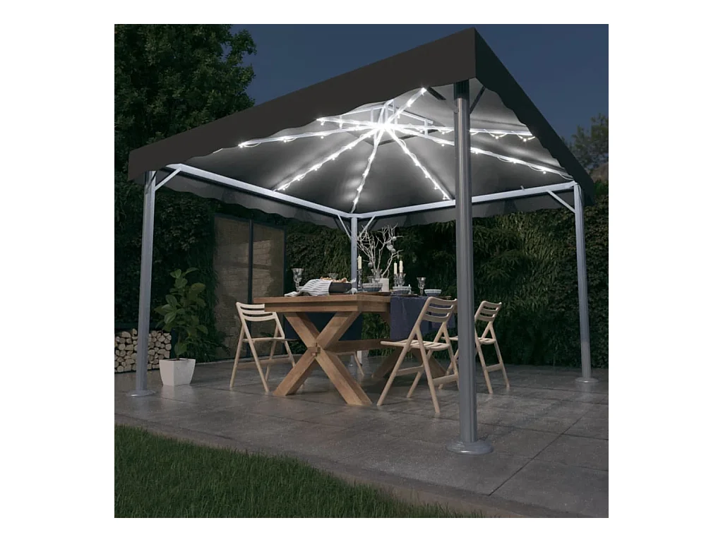 Tonnelle avec guirlande lumineuse à LED 300x300 cm Anthracite