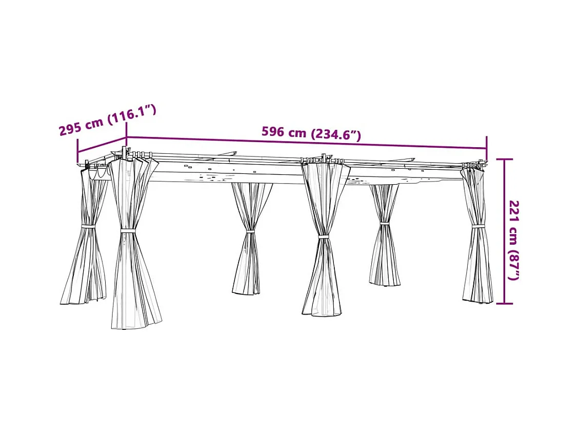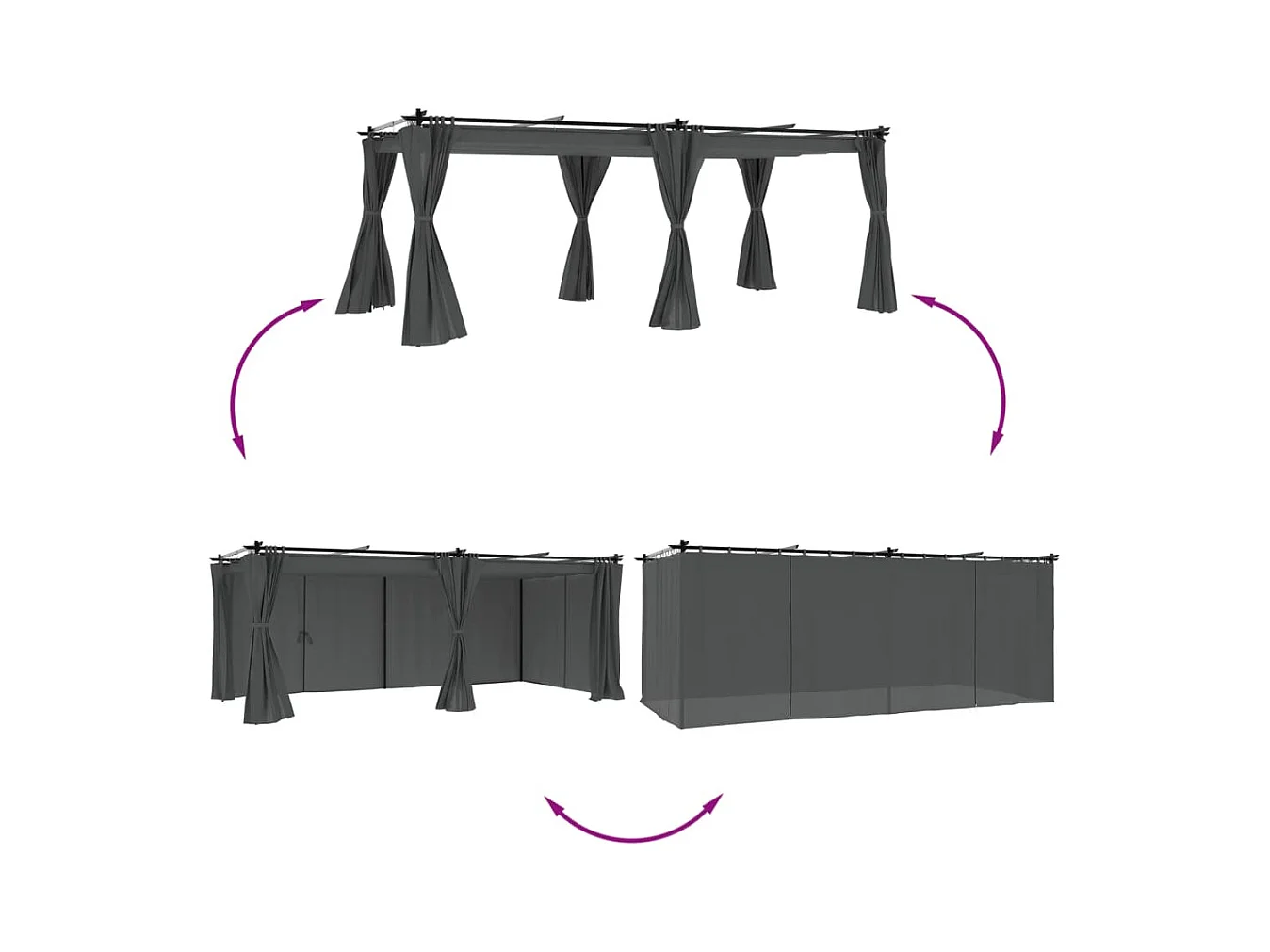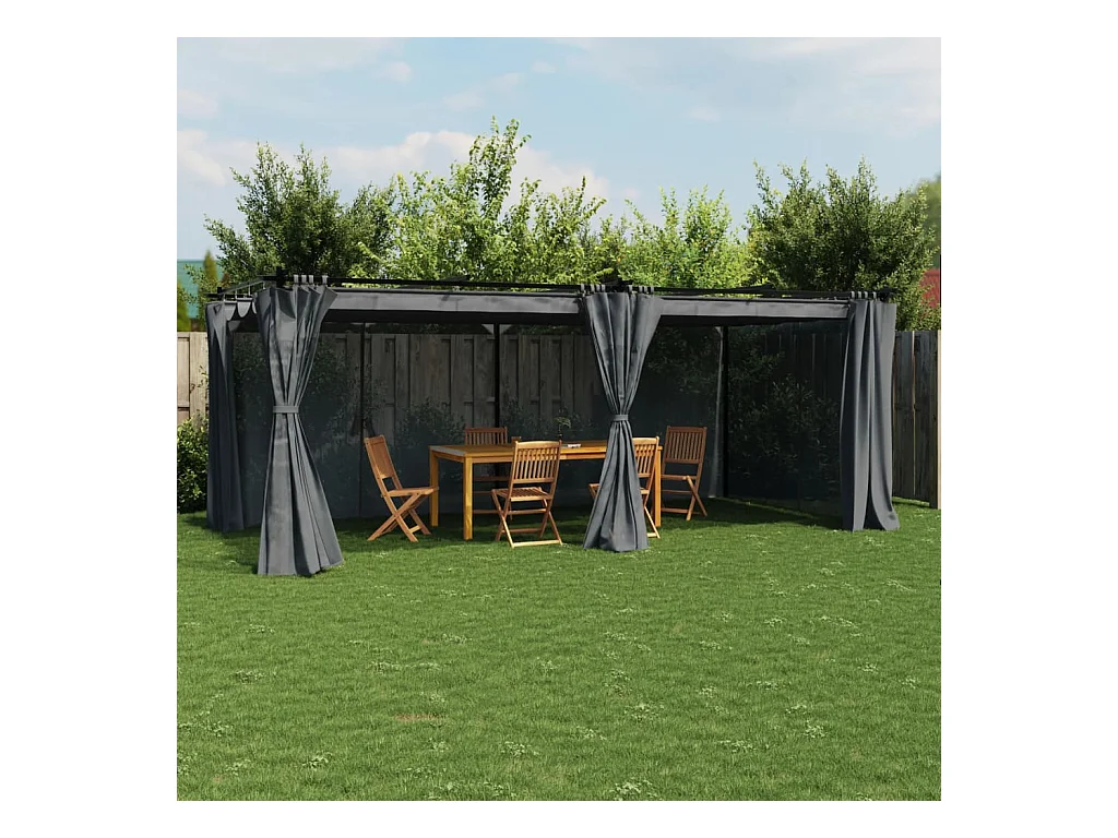 Tonnelle avec rideaux anthracite 6x3 m acier