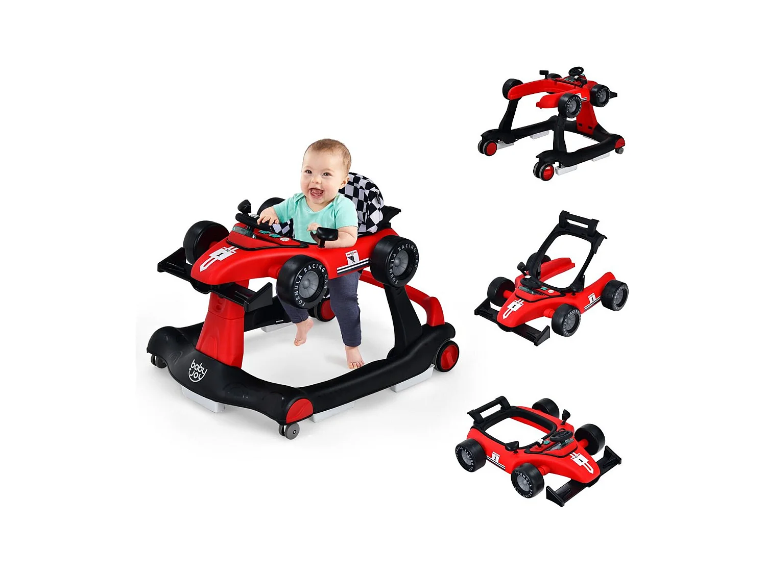 4 en 1 Trotteur Bébé Évolutif Pliable avec 3 Hauteur Réglable Trotteur Marche avec Lumière Charge 12 kg pour Bébé de 6+ Mois Rouge
