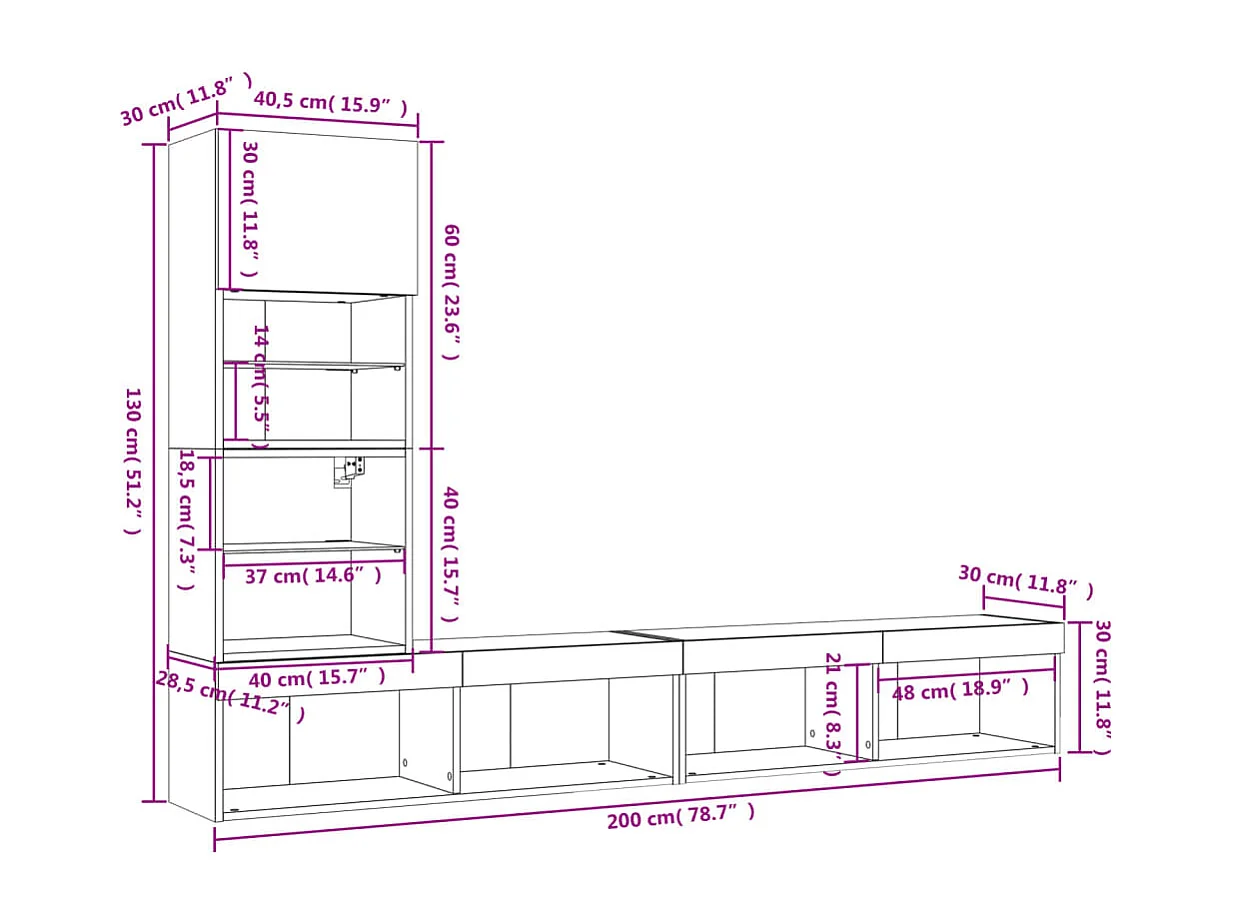 Unités murales TV 4 pcs chêne fumé bois d'ingénierie
