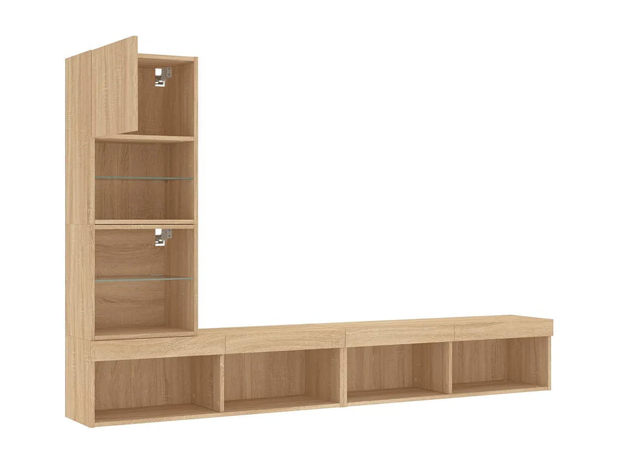 Unités murales TV avec LED 4 pcs chêne sonoma bois d'ingénierie