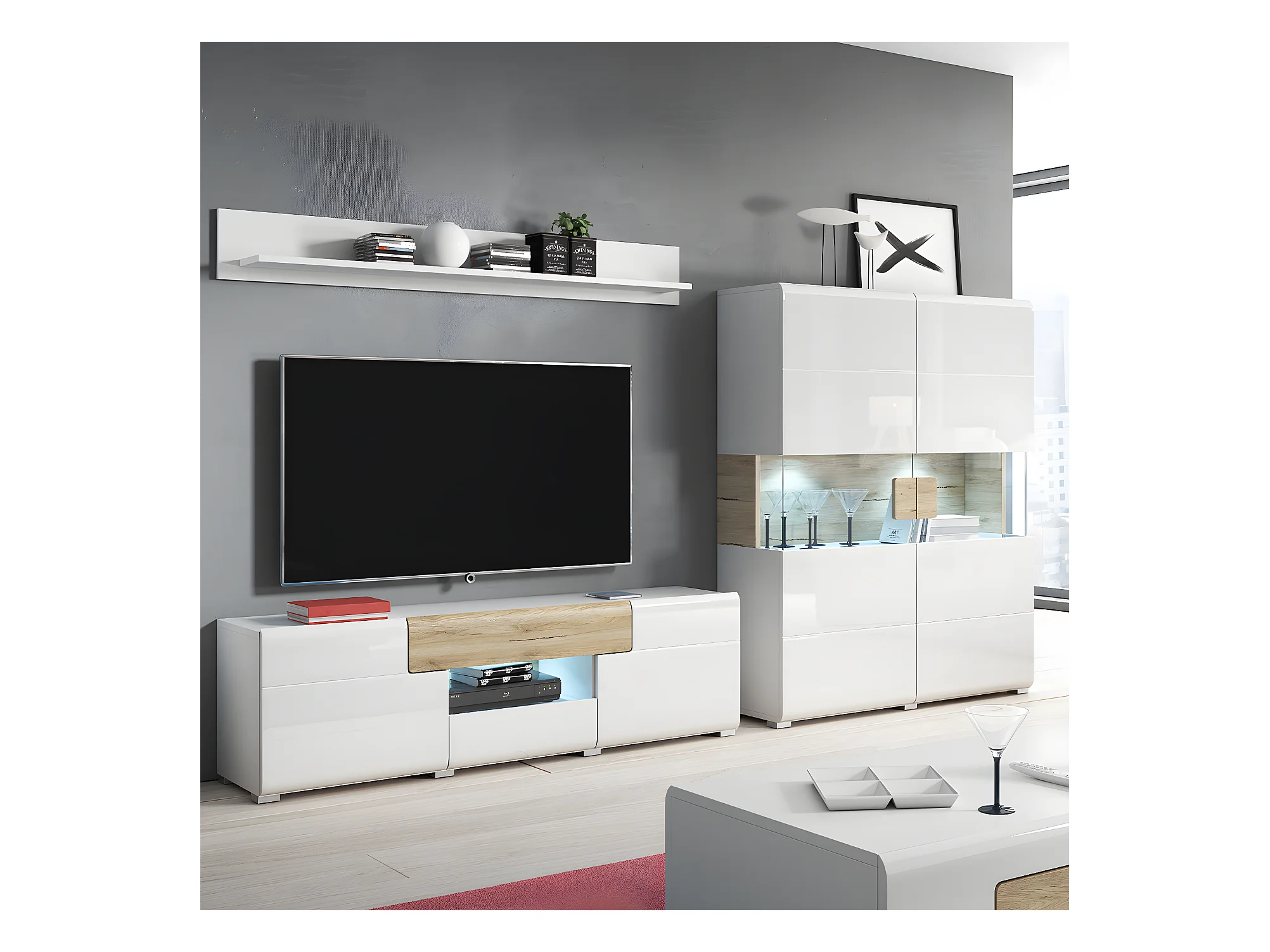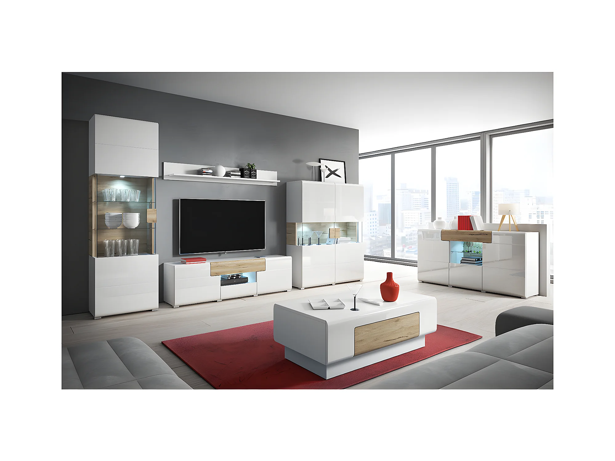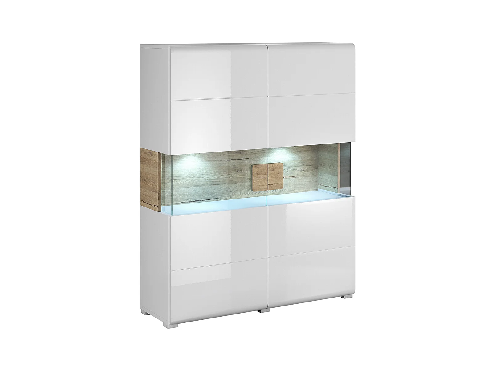 Vaisselier 2 portes avec LED Jules Blanc et Bois