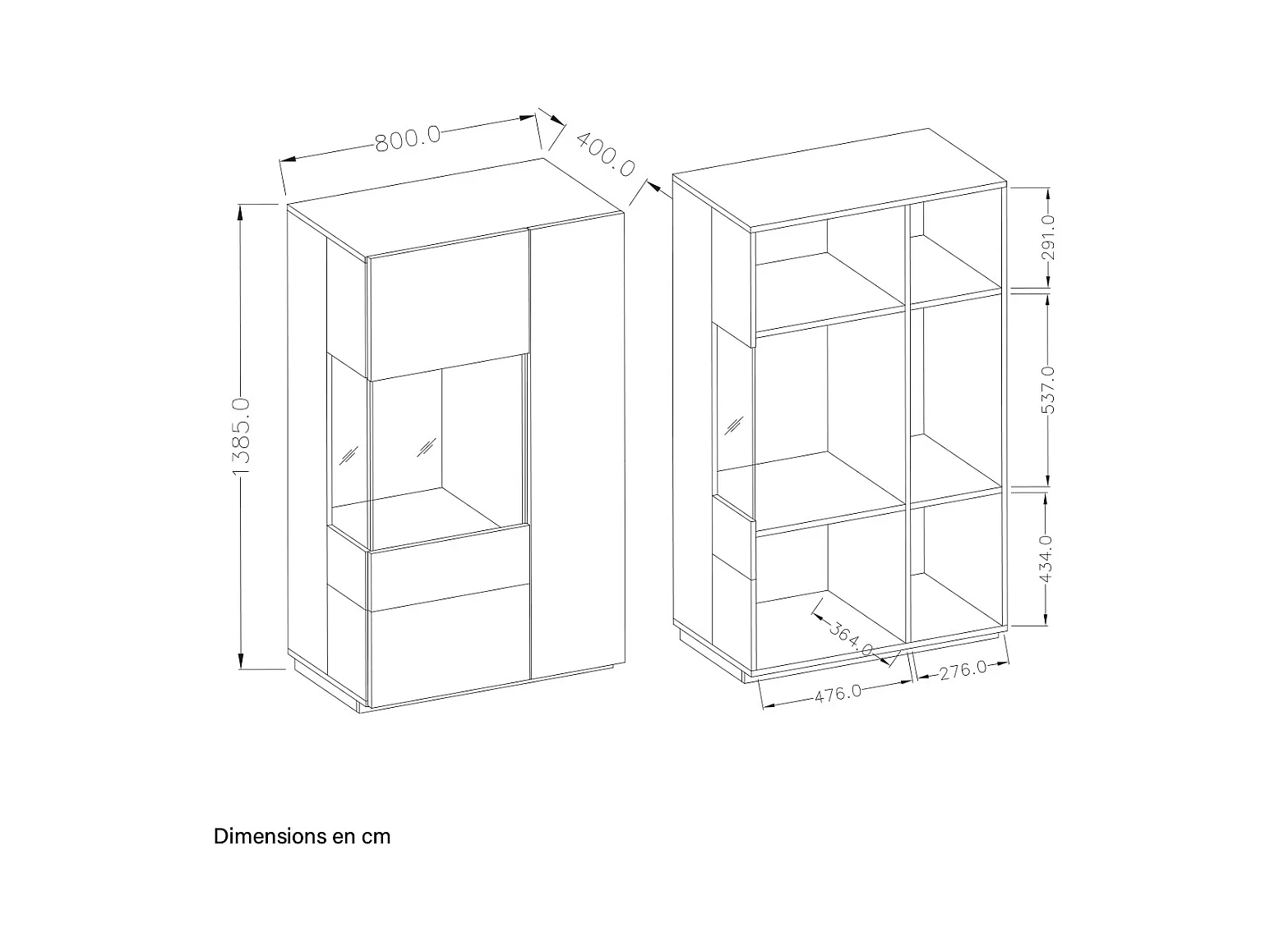 Vaisselier 2 portes ouverture gauche Andrea Gris anthracite et Bois
