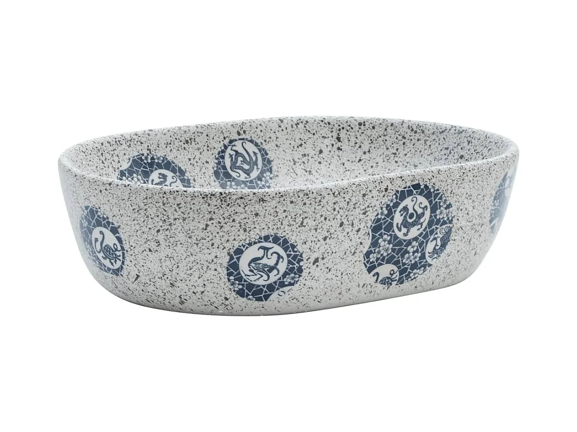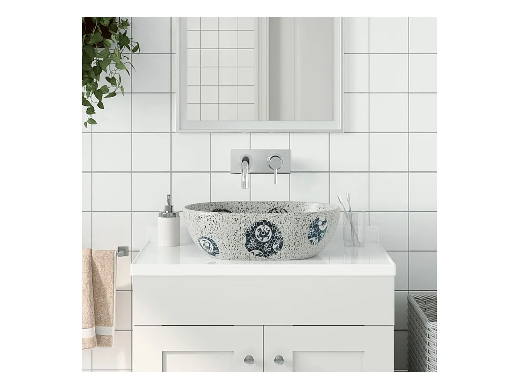 Vasque à poser gris et bleu ovale 47x33x13 cm céramique