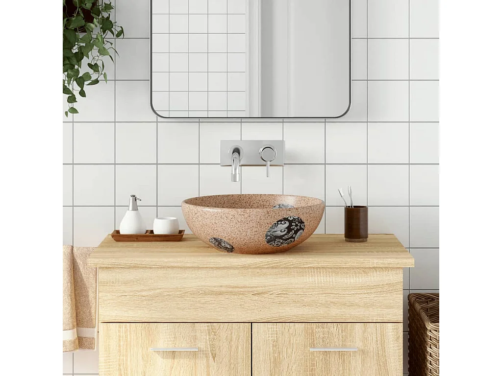 Vasque à poser marron et bleu rond Φ41x14 cm céramique