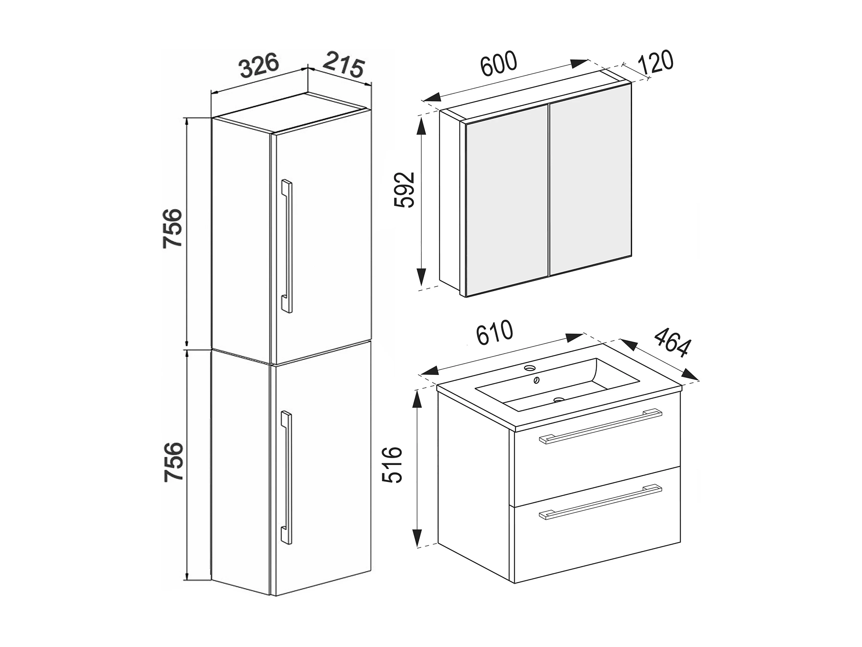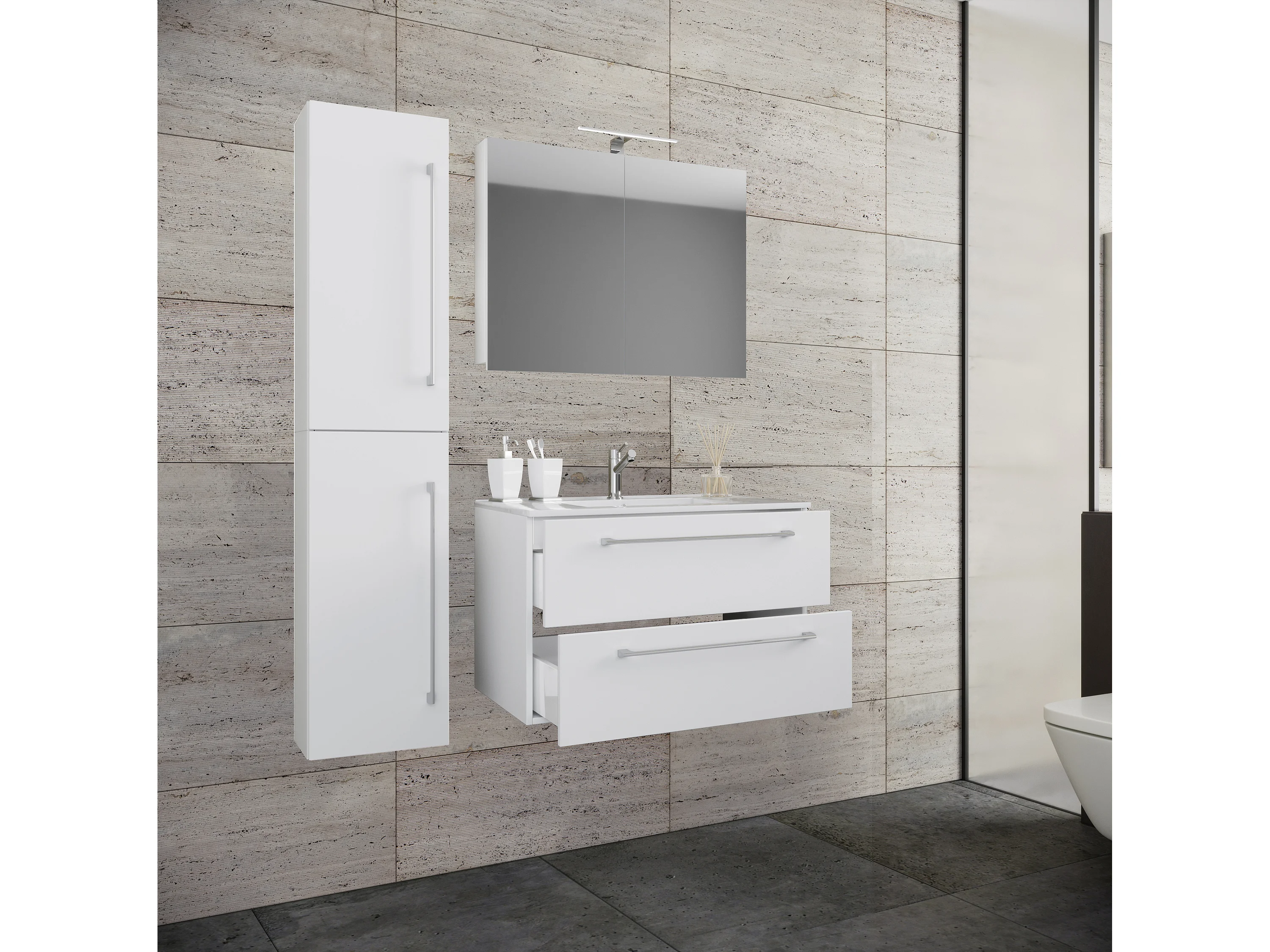 Bathroom furniture washbasin Badinos White H. 151 x W. 93 x D. 46 cm