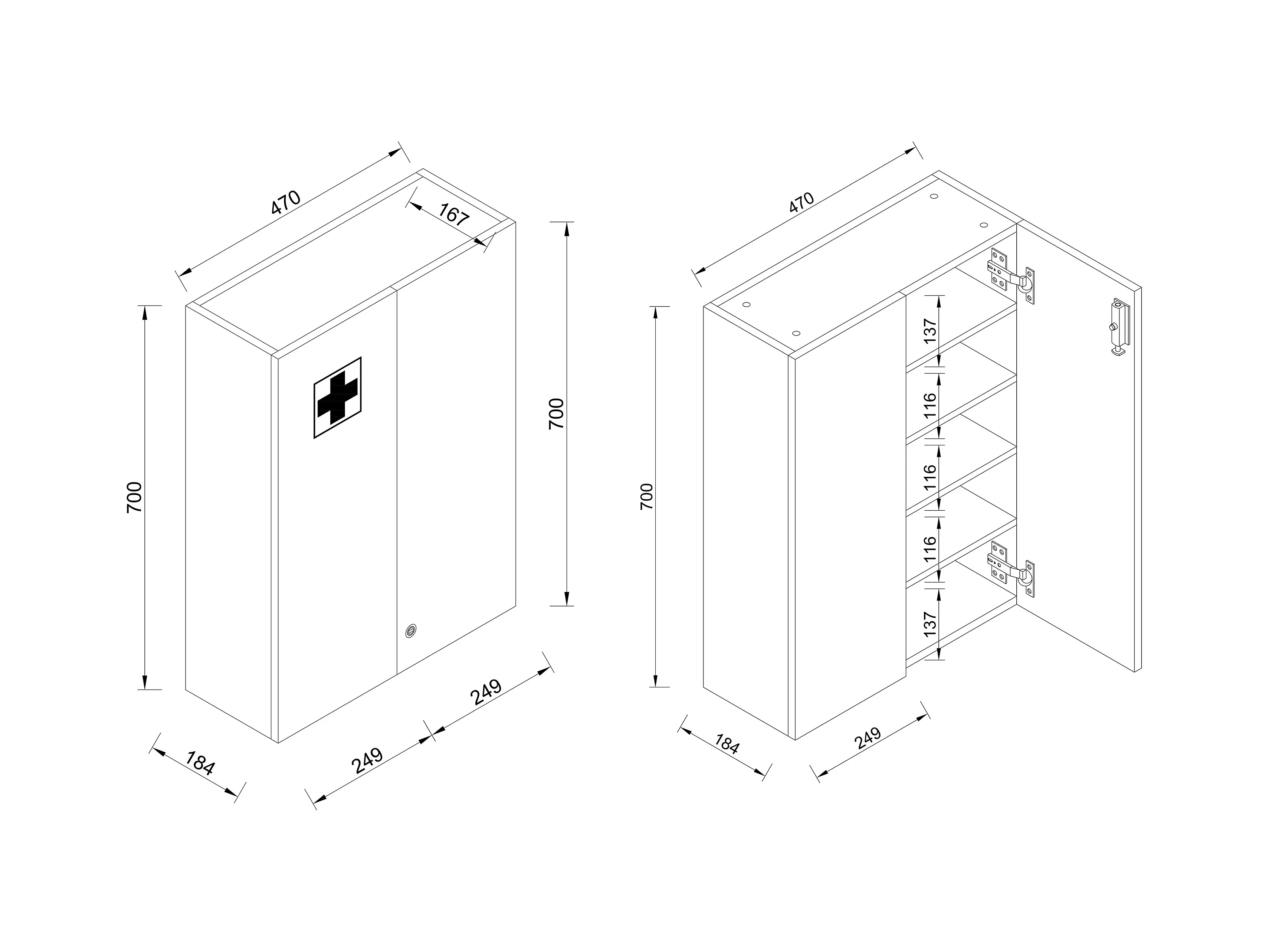 Medical cabinet Medasa White H. 70 x W. 47 x D. 19 cm