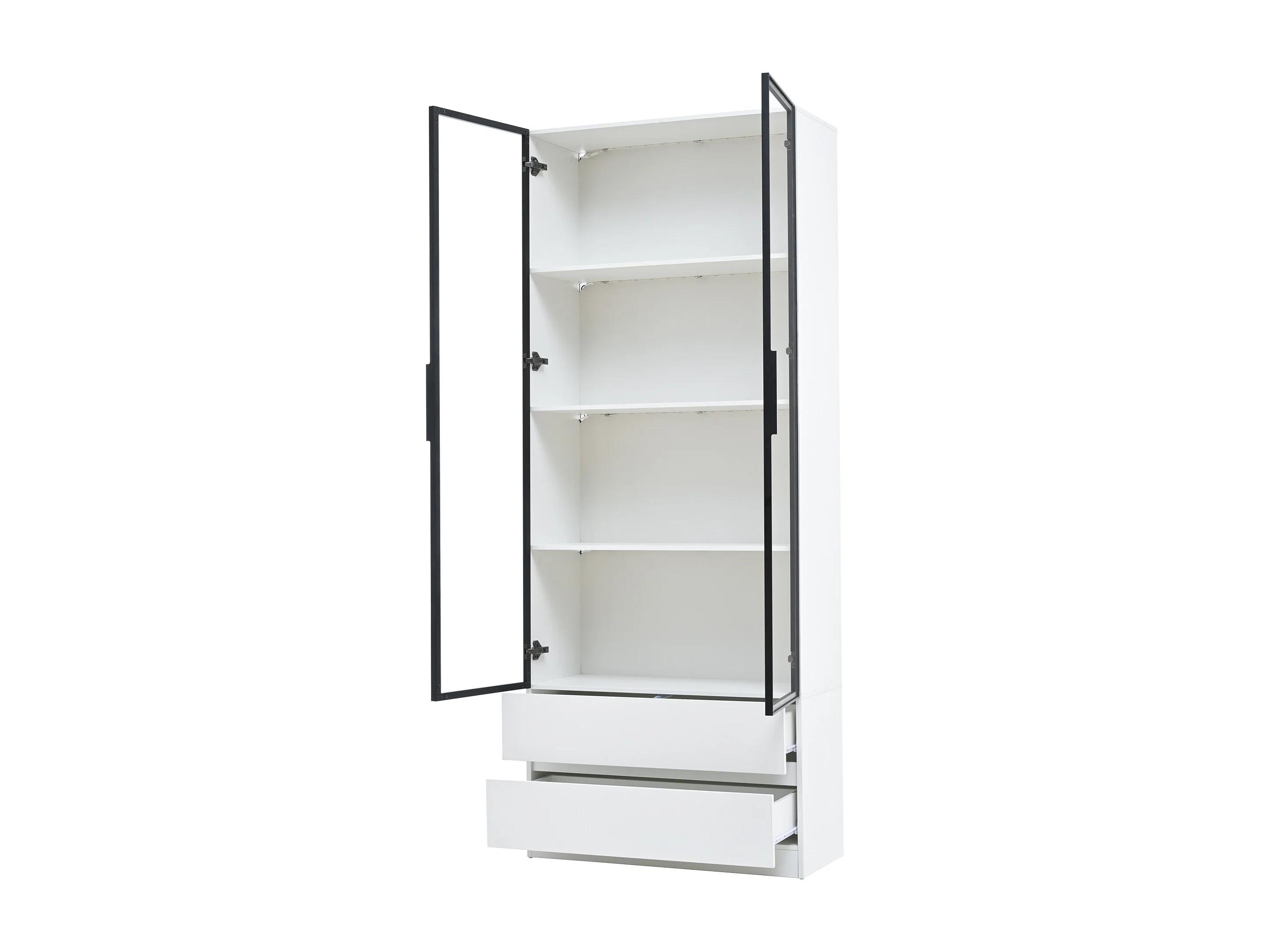 Vitrine 80x34x200 cm - avec éclairage LED - avec 2 porte et 2 tiroirs - Finition brillante - blanc