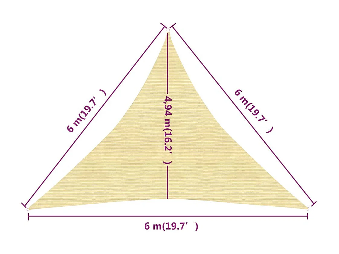 Voile d'ombrage 160 g/m² Beige 6x6x6 m PEHD