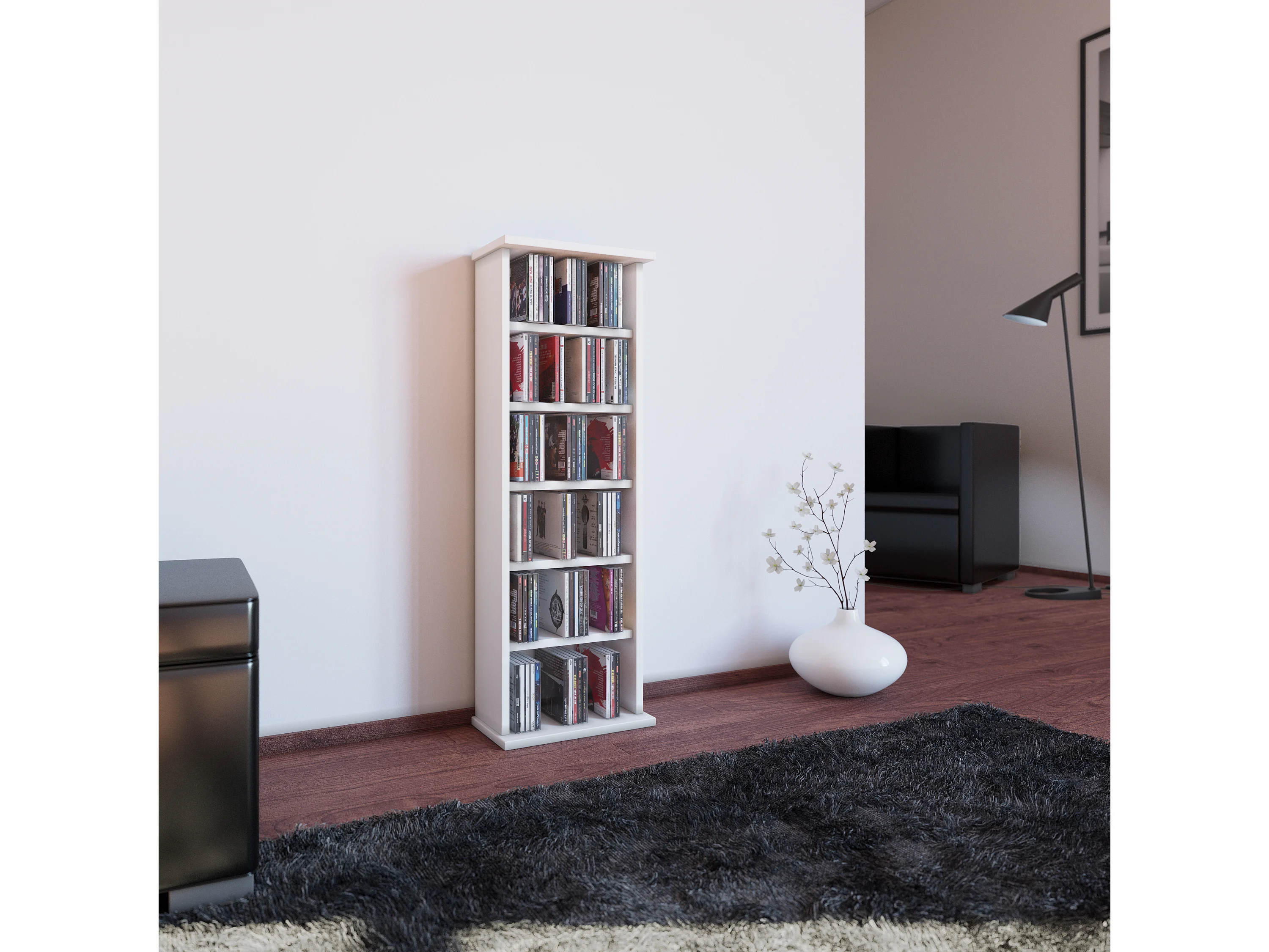 CD / DVD Media Shelf Vostan White H. 92 x W. 31 x D. 18 cm